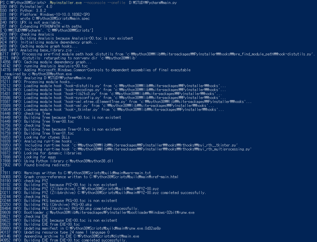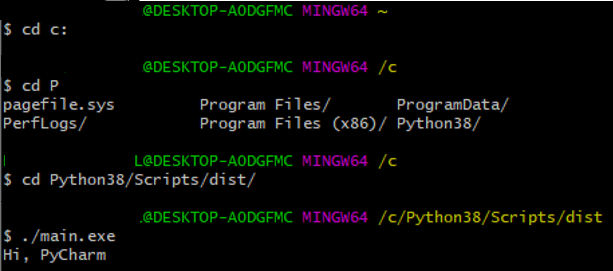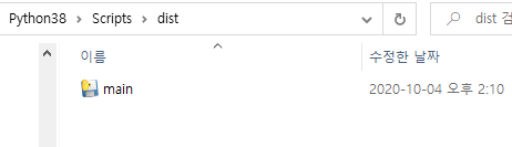위와 같이 cmd 를 입력한 경로 하위에 dist 폴더 내에 main.exe 가 생성되었다.