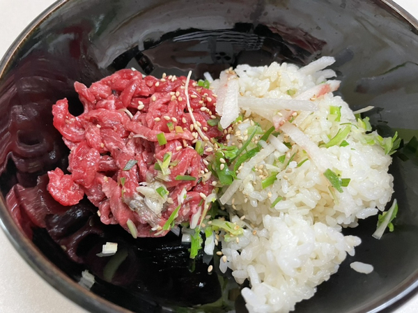 스테이크덮밥 먹을때 만들어놓은 소스와 참기름 조금 둘러먹으니 꿀맛이다 :)